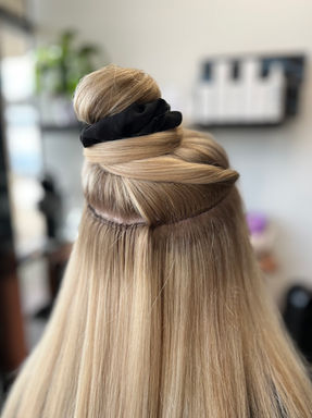 As a first time extension guest, you will receive a thorough consultation, complimentary goodie bag, after care instructions, custom color and blending setting you up for at home care success and our little secret.